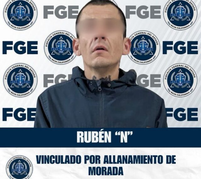 Ensenada.- La Fiscalía Regional de Ensenada obtuvo la vinculación a proceso de Rubén “N” por el delito de allanamiento de morada, luego de su detención realizada en la colonia Fovissste cuarta sección.