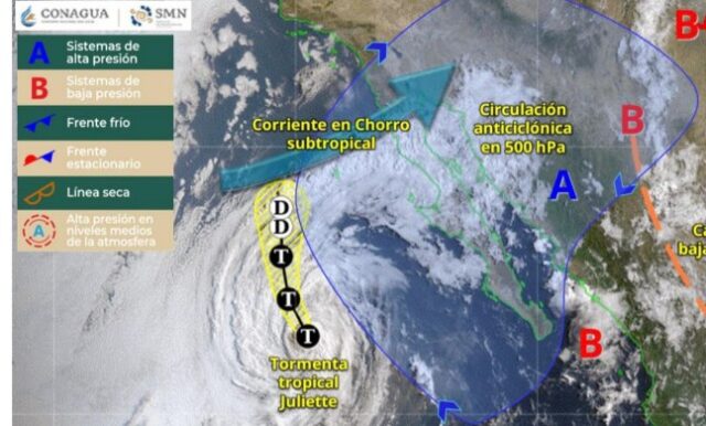 Salvador Cervantes Hernández, coordinador estatal de Protección Civil, puntualizó que la tormenta tropical Juliette no tiene trayectoria hacia Baja California ni generará efectos directos en la entidad.