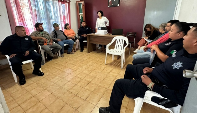 San Quintín.- Elementos de la Dirección de Seguridad y Protección Ciudadana, fueron capacitados por el INMUJER sobre la instalación de Puntos Naranja para San Quintín.