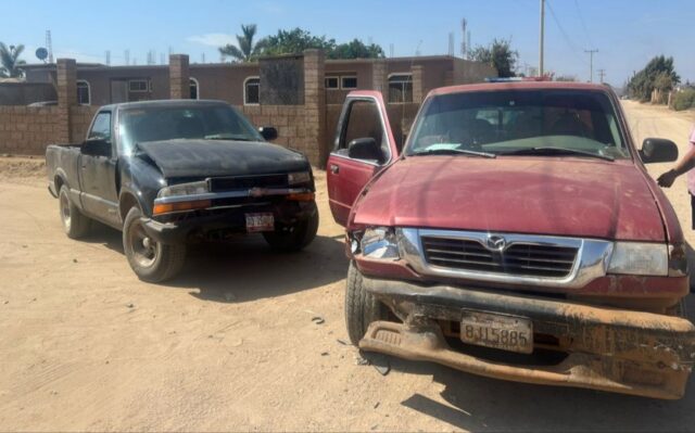 San Quintín.- Aparentemente al circular sin precaución, un conductor se impactó con su pick up contra otro vehículo que circulaba cerca de la secundaria 36 en el municipio de San Quintín.