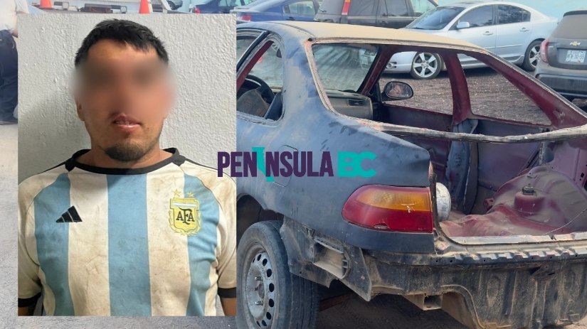 San Quintín.- Un sujeto identificado como Jesús Alfonso fue detenido por conducir por las calles de San Quintín un vehículo con reporte de robo, mismo que presentaba daños visibles.