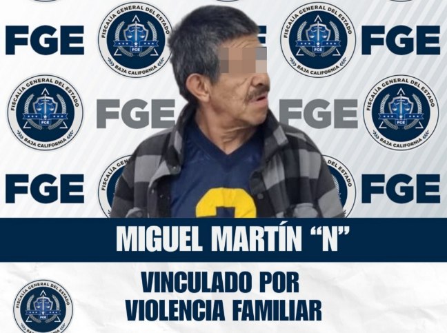 Ensenada.- La Fiscalía Regional de Ensenada, a través de la Unidad de Investigación de Maneadero, logró que un Juez de Control vinculara a proceso a Miguel Martín “N”, de 58 años de edad, por el delito de violencia familiar, además de imponerle la medida cautelar de prisión preventiva.