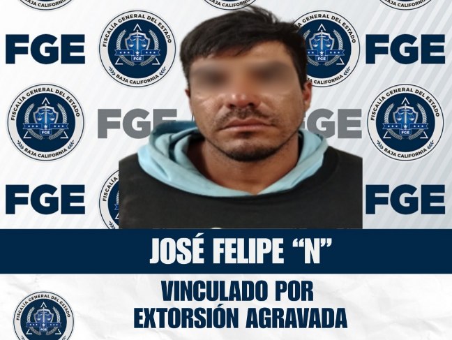 Ensenada.- En el marco de la Estrategia Nacional contra la Extorsión, la Fiscalía General del Estado logró la vinculación a proceso de José Felipe “N”, de 34 años de edad, por el delito de extorsión agravada, en perjuicio de una empresa de transporte y maniobras de maquinaria pesada en Ensenada.