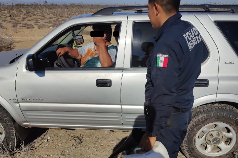 San Quintín. – Agentes de la Policía Municipal adscritos a Villa de Jesús María auxiliaron a una mujer a quien se le agotó el combustible mientras circulaba sobre la carretera desde Santa Rosalía, en Baja California Sur.