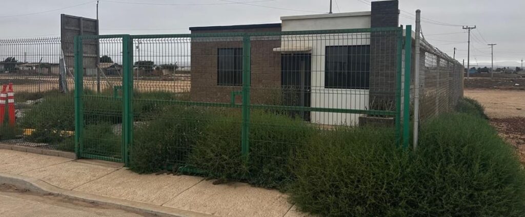 Mientras que autoridades locales omiten responder cuestionamientos sobre el proyecto, actualmente solo han completado la casa muestra, misma que permanece con matorrales espinosos, tanto en sus alrededores como en el interior del predio.