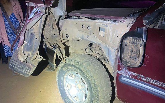 En ese momento, el troque intenta pasarla sin mantener su distancia, lo que provocó su impacto en la puerta izquierda del vehículo de la afectada: un pick up Toyota Tundra.