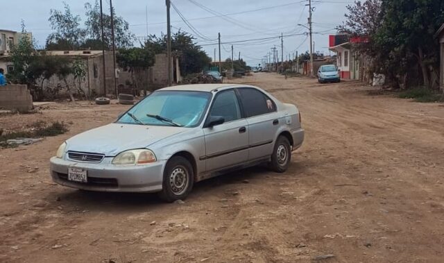 San Quintín.- Aparentemente tras ser robado un día antes, un Honda Civic fue localizado en una de las calles de la colonia Las Flores, en el municipio de San Quintín.