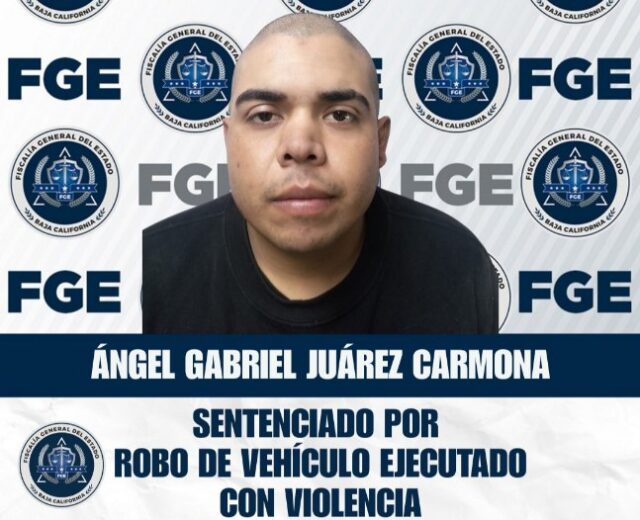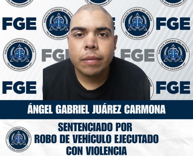 Ensenada.- La Fiscalía Regional de Ensenada obtuvo una sentencia condenatoria de 8 años y 8 meses de prisión, sin beneficios judiciales, en contra de Ángel Gabriel Juárez Carmona, por el delito de robo de vehículo de motor ejecutado con violencia.