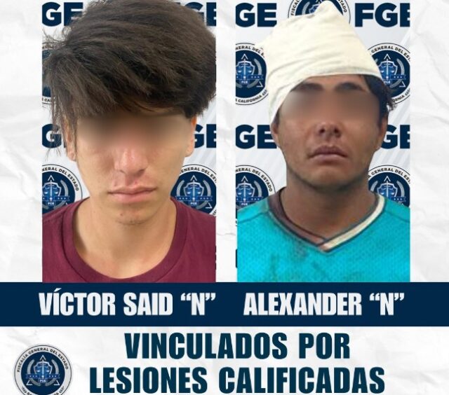 Ensenada.- Derivado de hechos ocurridos en el fraccionamiento Villas del Real VII, la Fiscalía Regional de Ensenada, en coordinación con la Unidad de Investigación con Detenido, logró la vinculación a proceso de dos hombres por el delito de lesiones calificadas.