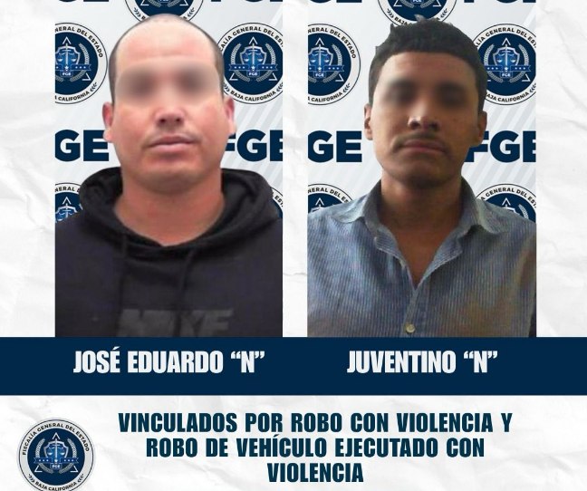 Ensenada.- La Fiscalía Regional de Ensenada obtuvo la vinculación a proceso de José Eduardo “N” y Juventino “N”, presuntos responsables de participar en el robo con violencia de un vehículo, ocurrido en enero de 2022.