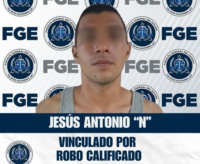 Ensenada.- La Fiscalía Regional de Ensenada obtuvo auto de vinculación a proceso en contra de Jesús Antonio “N”, por su presunta responsabilidad en el delito de robo calificado cometido en establecimiento comercial abierto al público y ejecutado con violencia.