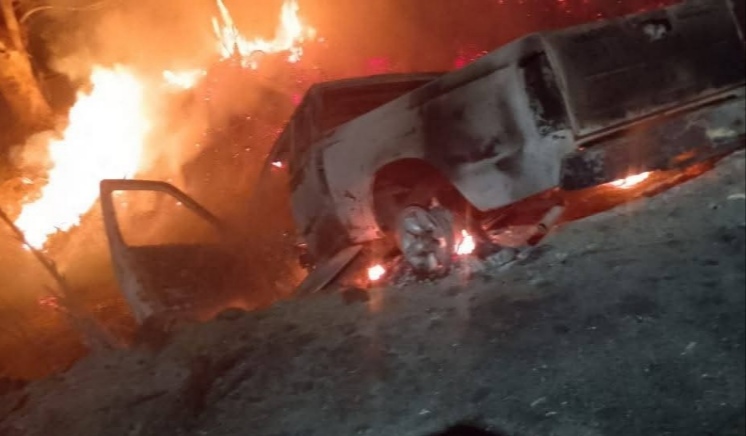 Ensenada.- El incendio de un vehículo tipo pick up cerca de la carretera provocó que las llamas se extendieran a los alrededores en las inmediaciones de San Vicente, al sur de Ensenada.