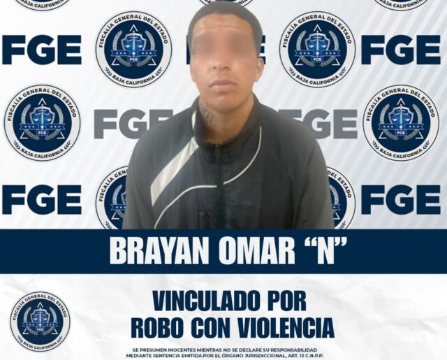 Ensenada. – Por su probable responsabilidad en el delito de robo calificado con violencia a un menor de edad, la Fiscalía Regional de Ensenada, a través de la Unidad de Investigación de Delitos con Detenido, obtuvo la vinculación a proceso de Brayan Omar “N”.