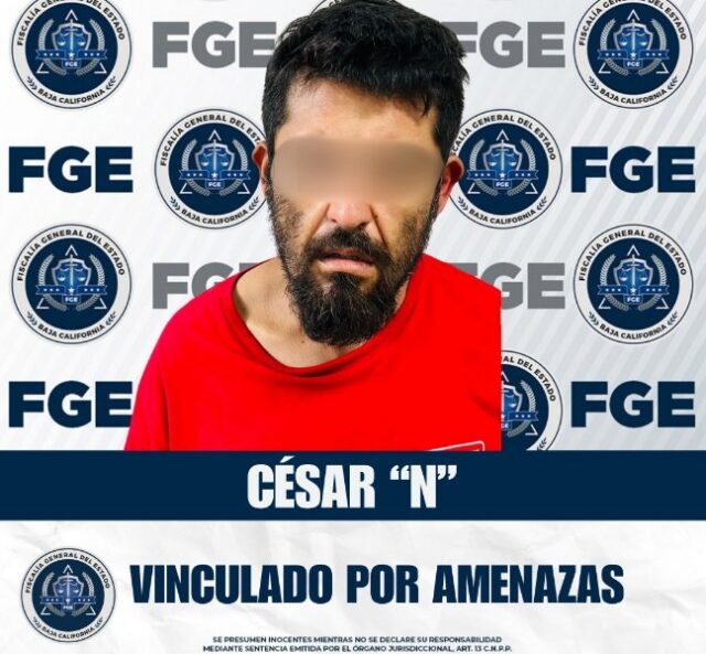Ensenada.- La Fiscalía Regional de Ensenada, en coordinación con la Unidad de Investigación con Detenido, obtuvo la vinculación a proceso de César “N” por el delito de amenazas.