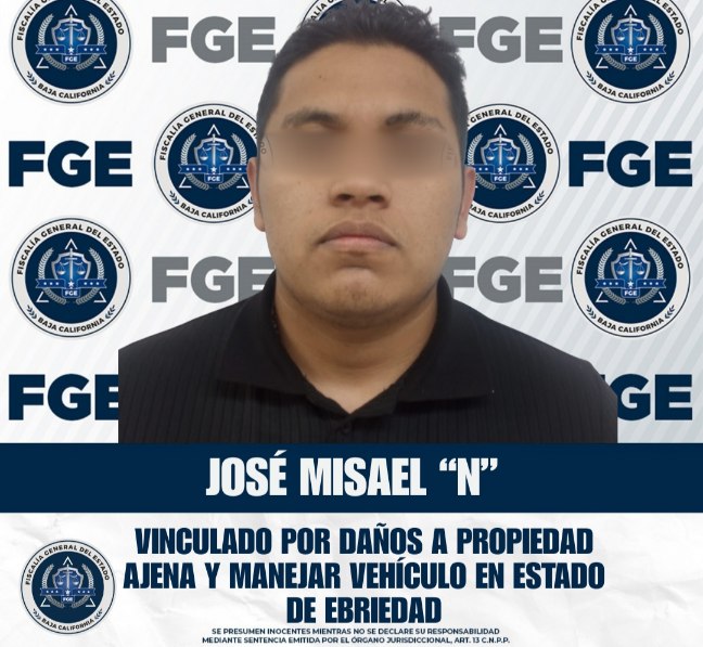 San Quintín .- La Fiscalía Regional de San Quintín obtuvo la vinculación a proceso de José Misael “N”, por su presunta responsabilidad en los delitos de daños a propiedad ajena y conducción de vehículo en estado de ebriedad, tras un accidente ocurrido en la colonia Las Granjas.
