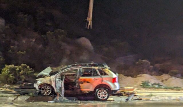 Camioneta se incendia mientras circulaba por el bulevar Geranios en Ensenada