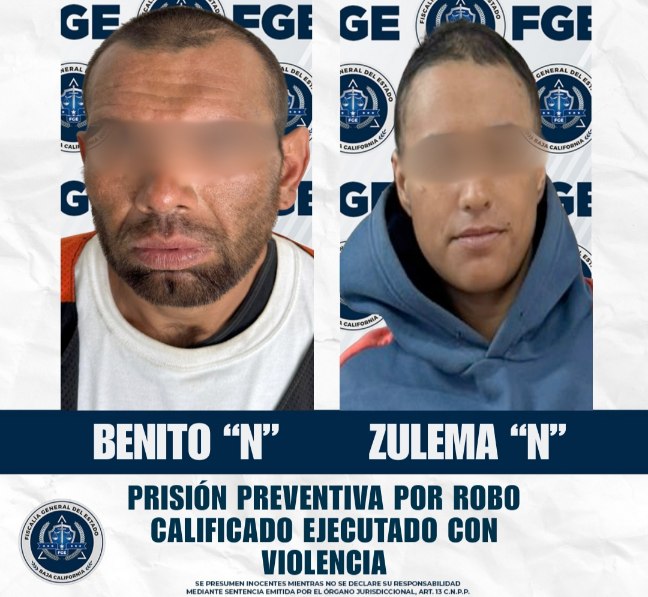Ensenada.- La Fiscalía Regional de Ensenada, a través de la Unidad de Investigación con Detenido, obtuvo la vinculación a proceso de Benito “N” y Zulema “N” por el delito de robo calificado a establecimiento comercial abierto al público, ejecutado con violencia, en grado de tentativa.