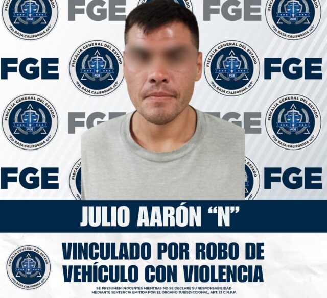 Ensenada.- La Fiscalía Regional de Ensenada obtuvo la vinculación a proceso y prisión preventiva en contra de Julio Aarón “N”, señalado como presunto responsable del robo con violencia de un vehículo a un conductor de plataforma digital.