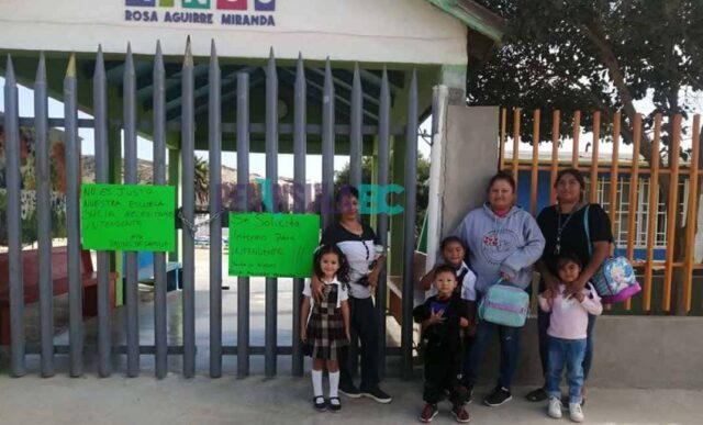 San Quintín.- Para denunciar la contratación de un interino para suplir a la intendente con meses de incapacidad, madres y padres de familia tomaron esta semana las instalaciones del Jardín de Niños Rosa Aguirre Miranda en El Rosario, al sur de San Quintín.