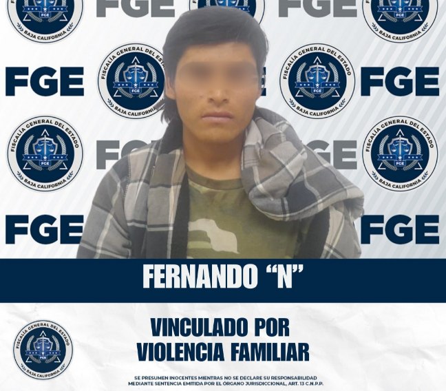 San Quintín.- La Fiscalía Regional de San Quintín obtuvo vinculación a proceso en contra de Fernando “N”, por su probable responsabilidad en el delito de violencia familiar, en agravio de una mujer de la tercera edad.