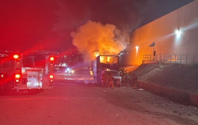Ensenada.- Un tractocamión se incendió este martes sobre la vía pública cerca del mercado Walmart de la colonia Obrera, en la ciudad de Ensenada.
