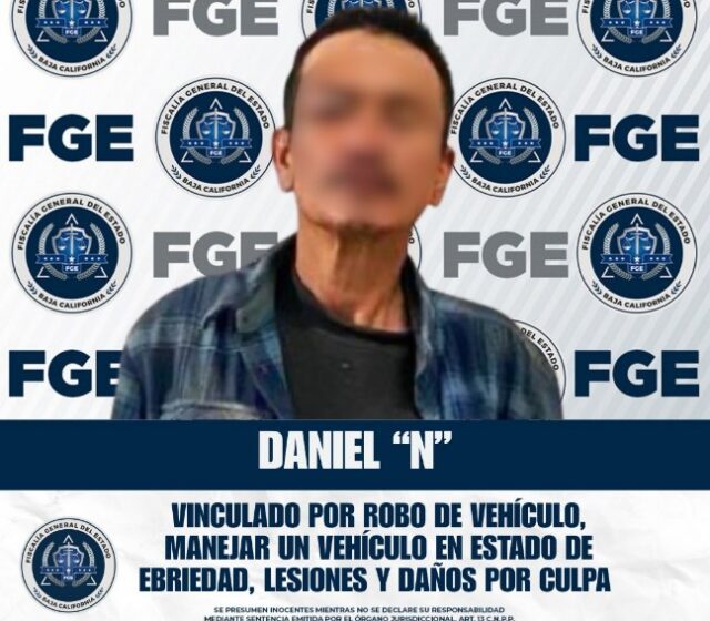 Ensenada.- Por su probable responsabilidad en los delitos de robo de vehículo, manejar un vehículo en estado de ebriedad, lesiones por culpa y daños en propiedad ajena por culpa, Daniel fue vinculado a proceso tras un incidente registrado el pasado 16 de octubre de 2025 en el poblado de Maneadero.