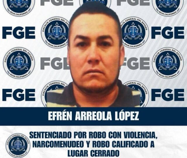 San Quintín.- La Fiscalía Regional de San Quintín obtuvo una sentencia de ocho años de prisión en contra de Efrén Arreola López, tras comprobarse su responsabilidad en cuatro hechos delictivos cometidos entre 2021 y 2022, que incluyen robos con violencia, narcomenudeo y robo calificado a lugar cerrado.
