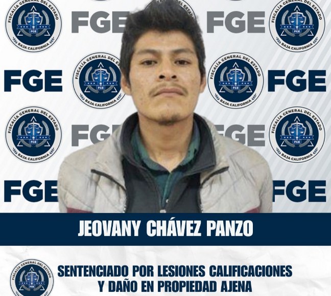 San Quintín.- La Fiscalía Regional de San Quintín obtuvo una sentencia condenatoria de 2 años y 4 meses de prisión en contra de Jeovany Chávez Panzo, por los delitos de lesiones calificadas y daño en propiedad ajena.
