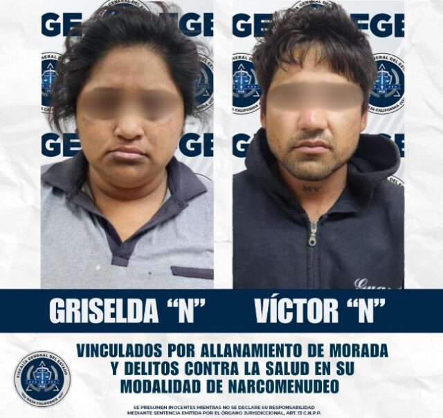 San Quintín.- Tras ser sorprendidos irrumpiendo en un domicilio de la colonia López, la Fiscalía Regional de San Quintín obtuvo la vinculación a proceso de Víctor “N” y Griselda “N” por los delitos de allanamiento de morada y contra la salud en su modalidad de narcomenudeo.