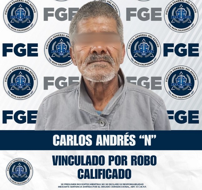 Ensenada.- La Fiscalía Regional de Ensenada, a través de la Unidad de Control con Detenido, logró la vinculación a proceso de Carlos Andrés “N” por el delito de robo calificado.