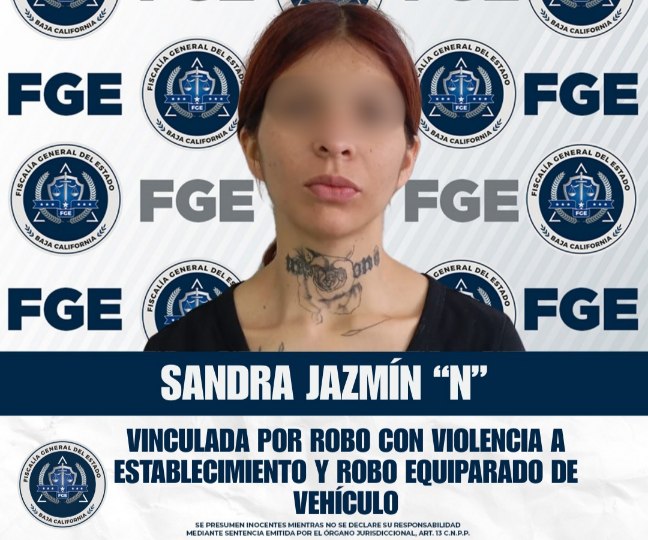Ensenada.- Una mujer identificada como Sandra Jazmín “N” fue llevada ante el Juez de Control por su probable participación en dos hechos delictivos diferentes, uno por robo con violencia en un establecimiento comercial y otro por robo equiparado de vehículo en modalidad de venta.