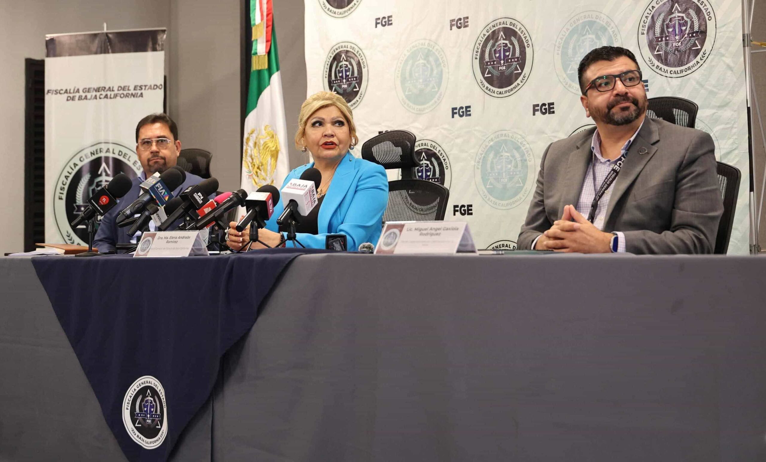 Tijuana.– La desarticulación de una banda criminal que operaba en el municipio de San Quintín – relacionada con un secuestro y asesinato – fue parte de los avances que expuso la Fiscal General del Estado, María Elena Andrade Ramírez, en rueda de prensa en la ciudad de Tijuana.