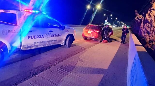 En labores de prevención y vigilancia en la delegación de Maneadero, el domingo 23 de noviembre del año en curso, oficiales de la Secretaría de Seguridad Ciudadana de Baja California (SSCBC) detectaron un vehículo que circulaba con las luces intermitentes encendidas y a una velocidad mayor a la permitida sobre la carretera Transpeninsular, situación que motivó la intervención.
