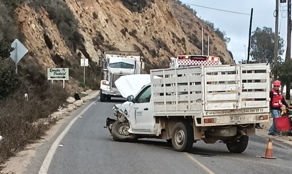 Ensenada.- Dos hombres resultaron lesionados tras un choque en una curva de la carretera estatal que conduce a la Bufadora, al sur de Ensenada.