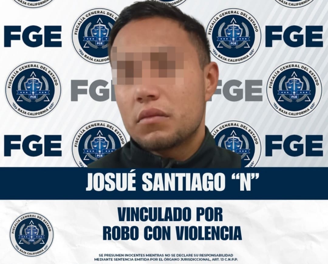 Ensenada.- La Fiscalía Regional de Ensenada obtuvo la vinculación a proceso de Josué Santiago “N”, por su probable participación en el delito de robo calificado a establecimiento comercial abierto al público, ejecutado con violencia a un OXXO ubicado en la Zona Centro.