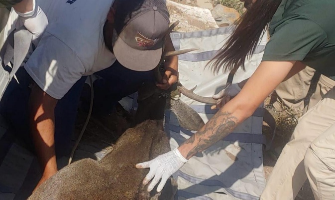 Ensenada.- Tras un reporte ciudadano, elementos adscritos a la Unidad Ecológica rescataron un venado en un predio baldío del fraccionamiento Villas del Campo, en la ciudad de Ensenada.