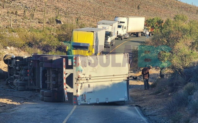 Trailero sufre volcadura en inmediaciones de Cataviña