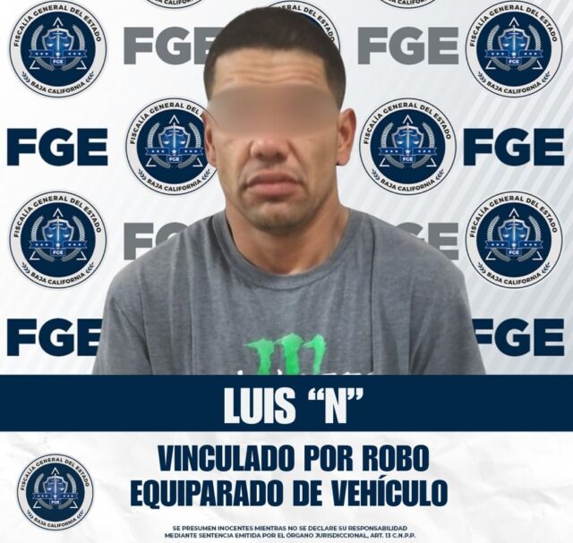 Ensenada.- La Fiscalía Regional de Ensenada, a través de la Unidad de Investigación de Delitos de Robo de Vehículos, obtuvo la vinculación a proceso de Luis “N” por el delito de robo equiparado de vehículo de motor en su modalidad de uso.