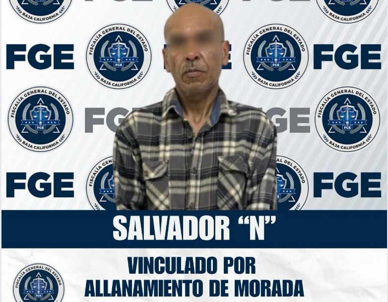 San Quintín.- La Fiscalía Regional de San Quintín logró la vinculación a proceso de Salvador “N”, detenido mediante orden de aprehensión por su presunta participación en el delito de allanamiento de morada.