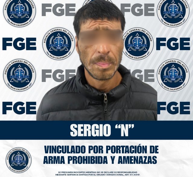 Ensenada.– La Fiscalía Regional de Ensenada, a través de la Unidad de Investigación con Detenido, obtuvo la vinculación a proceso de Sergio “N” por los delitos de portación de arma prohibida y amenazas.