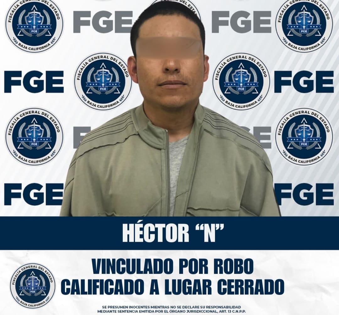 San Quintín.- La Fiscalía Regional de San Quintín, en coordinación con la Unidad de Investigación, logró la cumplimentación de una orden de aprehensión y la vinculación a proceso de Héctor “N” por el delito de robo calificado a lugar cerrado.