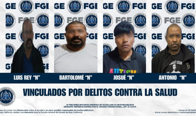 Ensenada.- La Fiscalía General del Estado, a través de la Fiscalía Especializada en Narcomenudeo, logró la vinculación a proceso y la imposición de la medida cautelar de prisión preventiva contra cuatro sujetos, asegurados en distintos puntos de la ciudad, por su probable responsabilidad en el delito de posesión de metanfetamina.