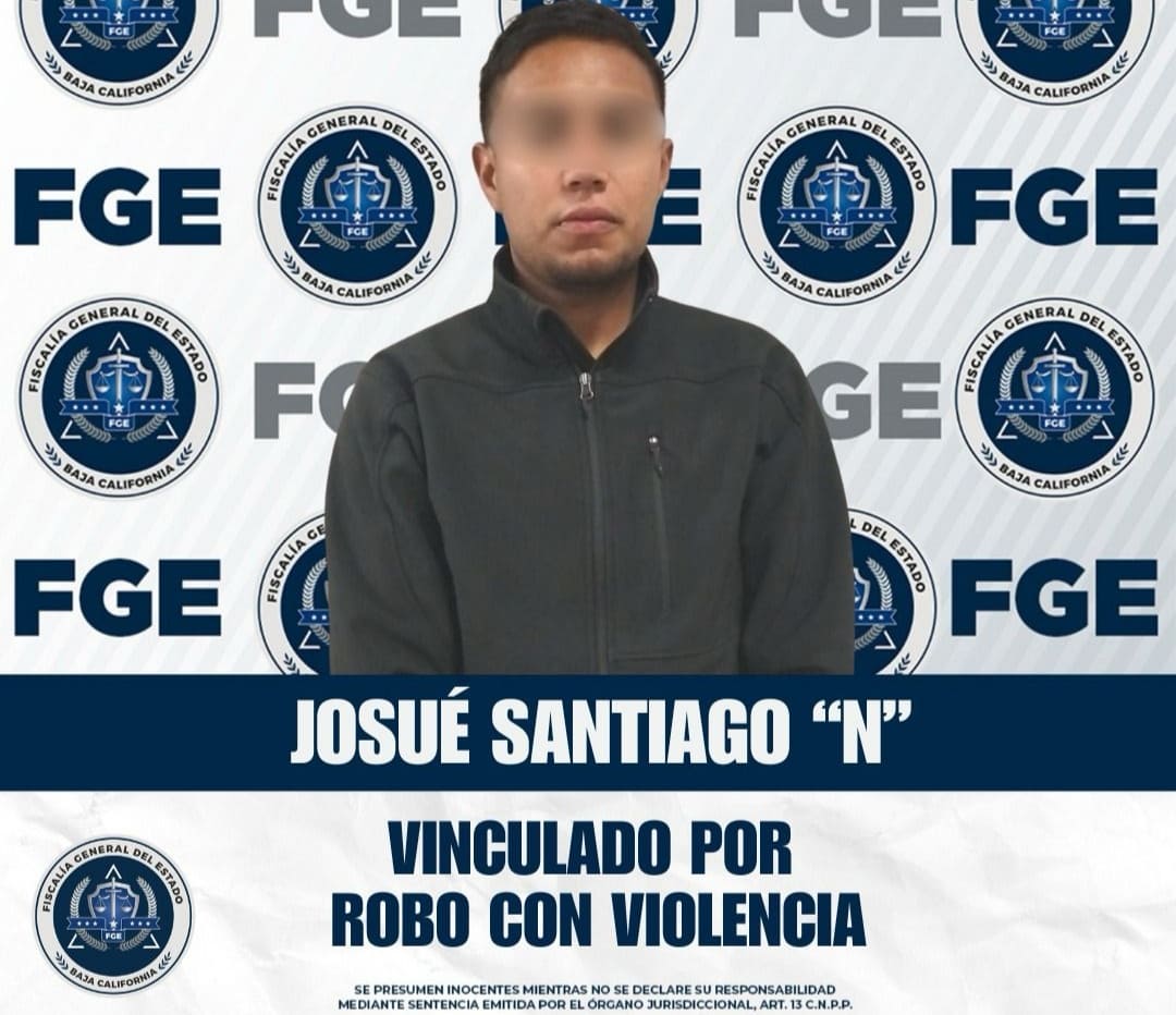 Ensenada.- La Fiscalía Regional de Ensenada logró que Josué Santiago “N” fuera vinculado a proceso por su presunta participación en un robo con violencia cometido en un establecimiento Oxxo de la colonia Empleados.