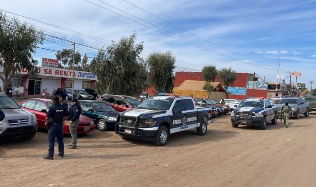 San Quintín.- Como parte de las acciones para combatir el robo de vehículos, elementos de los tres niveles de gobierno desplegaron un operativo de inspección y verificación de vehículos ofertados en la zona comercial y puntos estratégicos del municipio de San Quintín.