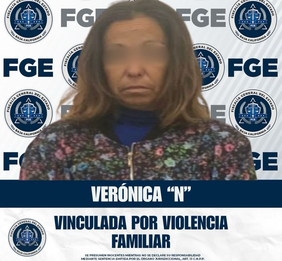 Ensenada.- Derivado de sus investigaciones, la Fiscalía Regional de Ensenada, en coordinación con la Unidad de Investigación de Maneadero, cumplimentó una orden de aprehensión y obtuvo la vinculación a proceso de Verónica “N” por el delito de violencia familiar.