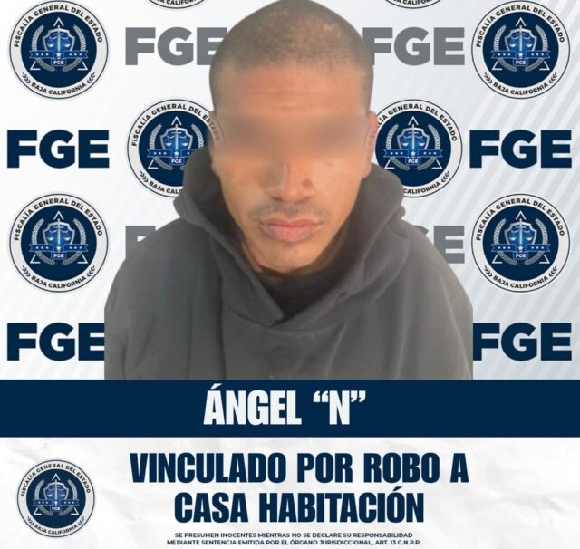 Ensenada.- Derivado de sus investigaciones, la Fiscalía Regional de Ensenada, en coordinación con la Unidad de Investigación con Detenido, logró la vinculación a proceso de Ángel “N” por el delito de robo calificado a casa habitación.