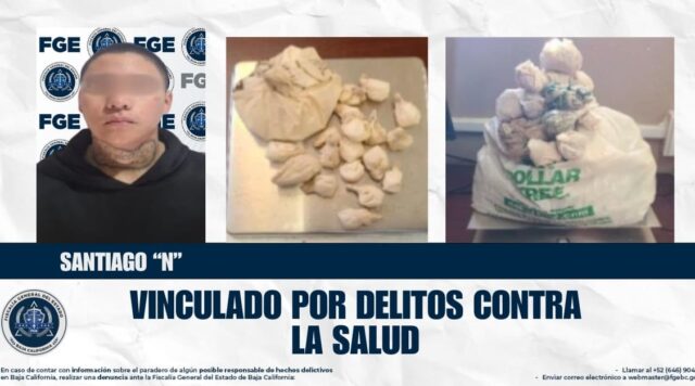 Ensenada.- La Fiscalía Especializada en Narcomenudeo, de la Fiscalía General del Estado, logró la vinculación a proceso de Santiago “N”, detenido en posesión de droga con características de metanfetamina y marihuana.