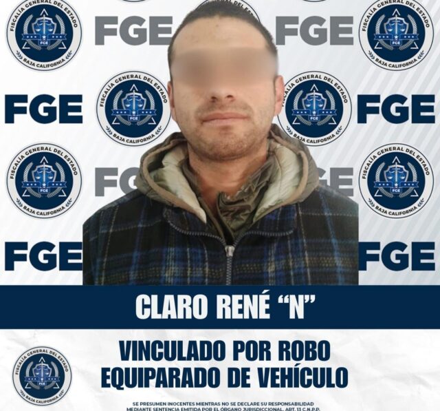 San Quintín.- La Fiscalía Regional de San Quintín, en coordinación con la Unidad de Investigación, logró la vinculación a proceso de Claro René “N” por el delito de Robo Equiparado de Vehículo de Motor, en la modalidad de venta de vehículo robado.