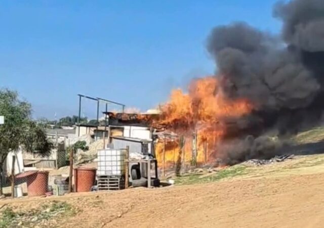 San Quintín.- Aparentemente tras una quema de material para extraer cobre, el fuego se extendió hacia materiales flamables, basura y una vivienda de la colonia Santa Fe, en el municipio de San Quintín.