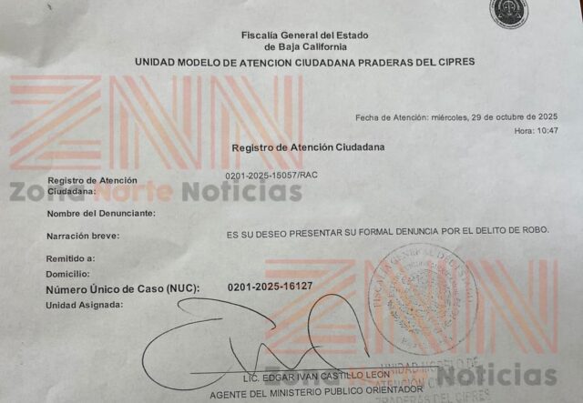 La denuncia penal fue registrada bajo el Número Único de Caso 0201-2025-16127, con fecha 29 de octubre de 2025.